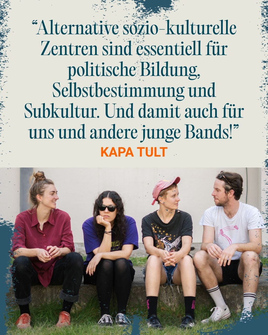 „Räume, die Kultur jenseits des Mainstreams überhaupt ermöglichen, sind akut bedroht. Wir unterstützen Orte der Kritik, (Sub)Kultur und der Solidarität – damit alternative Jugendclubs, queere Cafés und selbstverwaltete Kulturzentren erhalten bleiben.“